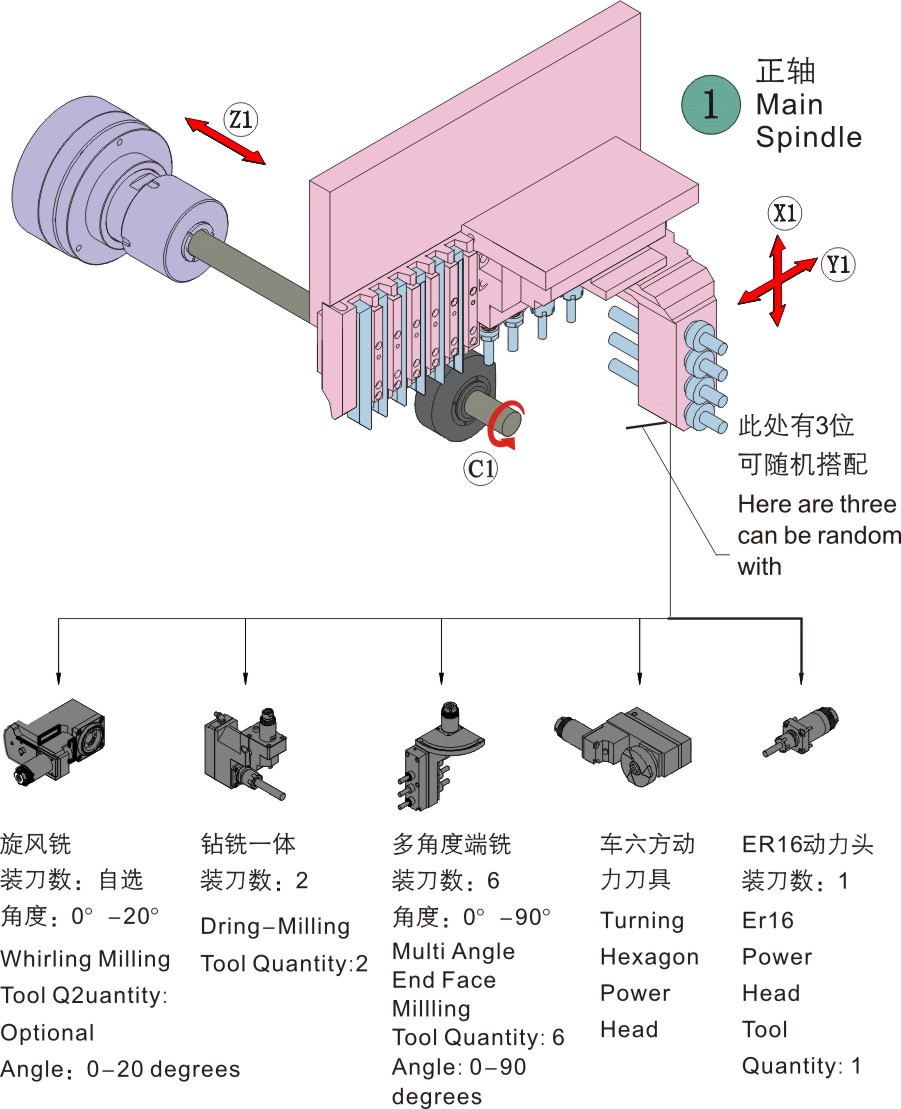 | 主軸側(cè)面動力頭 | 4支 | 2支ER11+2支ER16 | |